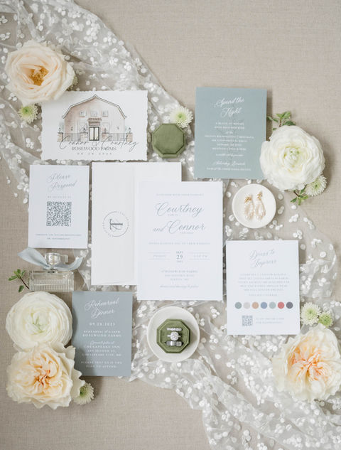 Our invitation suites are made to order, whether you want to start with an idea you see on our page and update the colors to fit your style or start totally from scratch, we're here for it. After we finish you invites, we can move into day-of decor to make your full wedding day cohesive from begining to end.